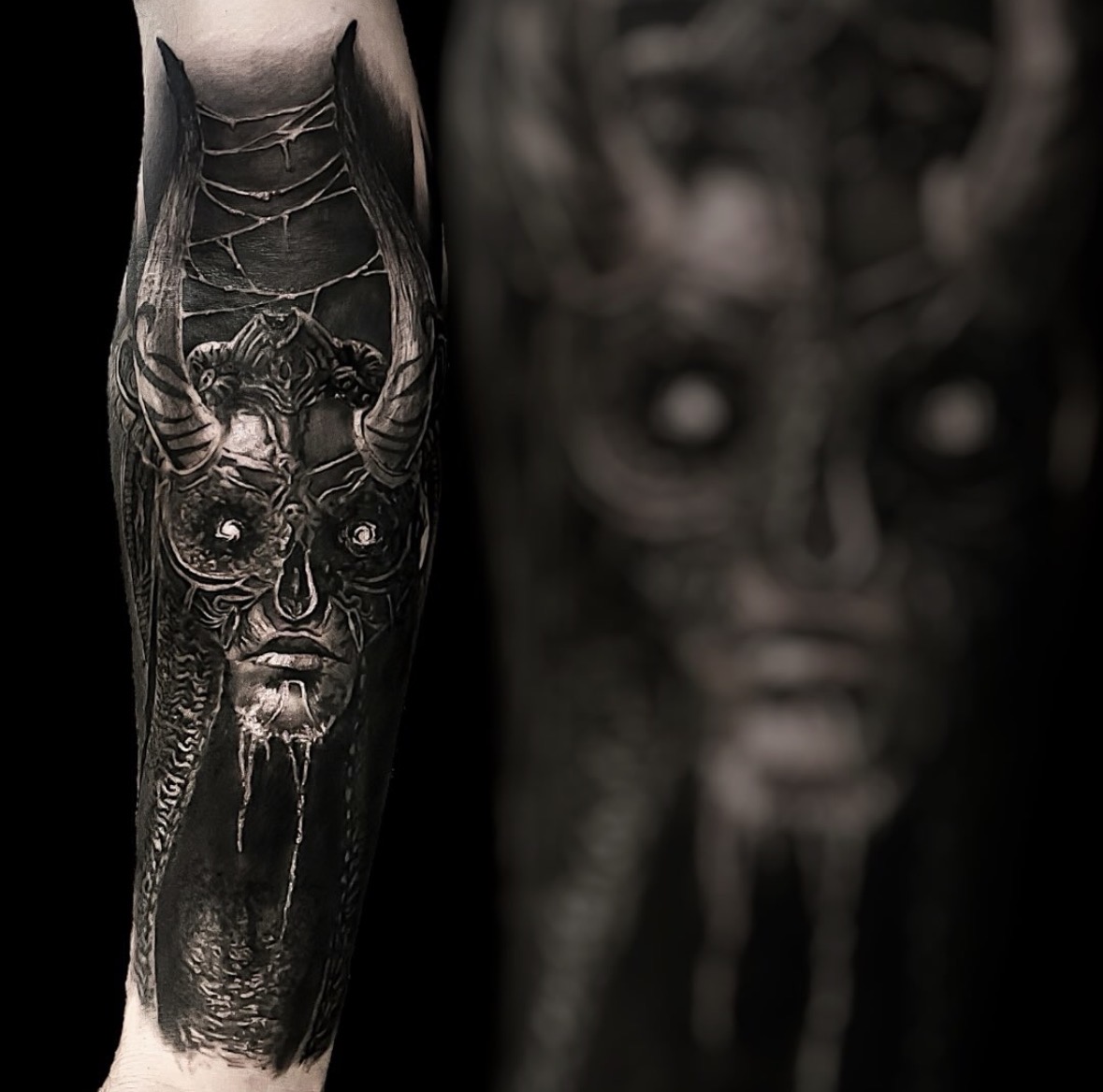 This genre of tattooing continues to evolve, with artists experimenting with blending dark themes with other styles and techniques, creating unique pieces that challenge the norms of traditional tattooing while celebrating the darker aspects of art and life.